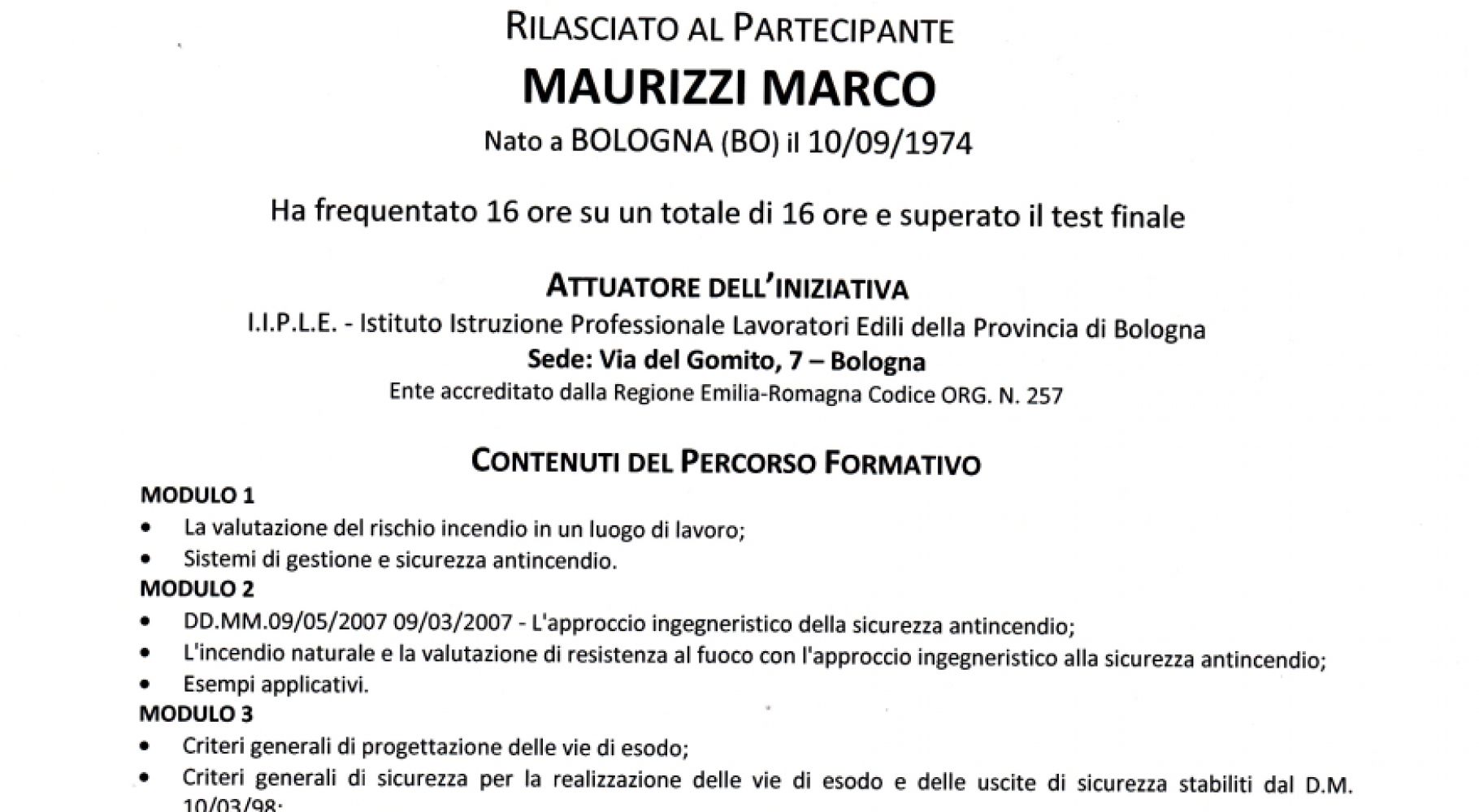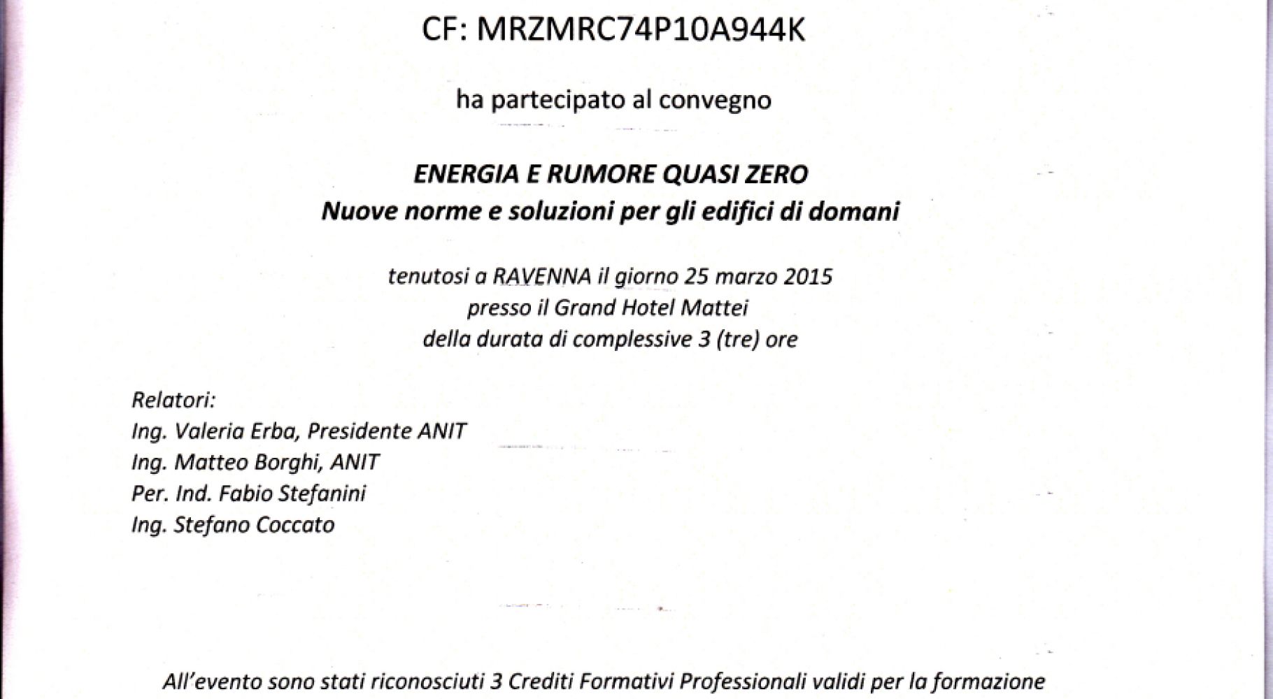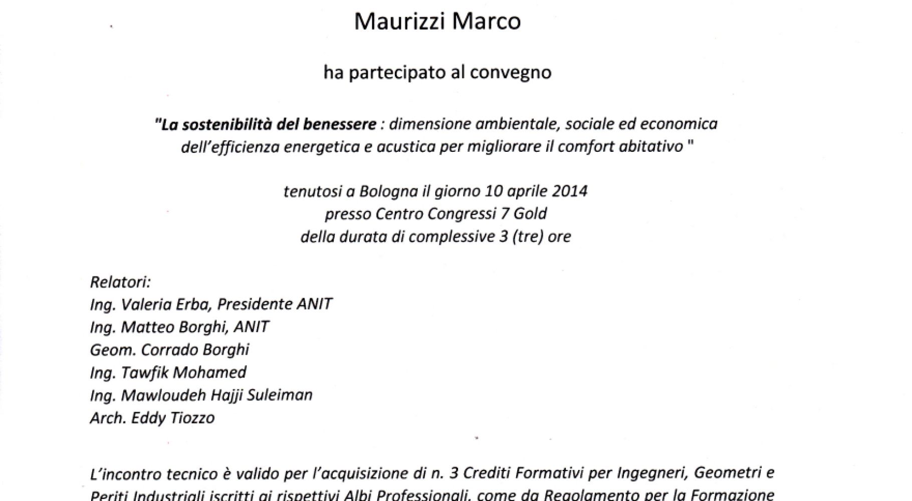 Titoli abilitativi _ Corsi/seminari/convegni